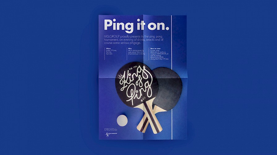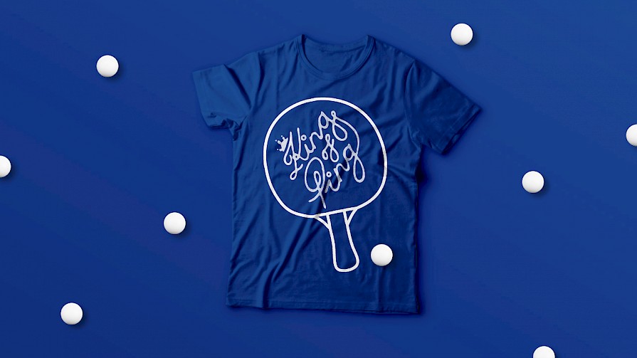 Identity for 'The King of Ping' a ping pong tournament at the office to raise money for a male cancer charity. I hand painted the ping pong bat, which also served as the trophy for the winner.
