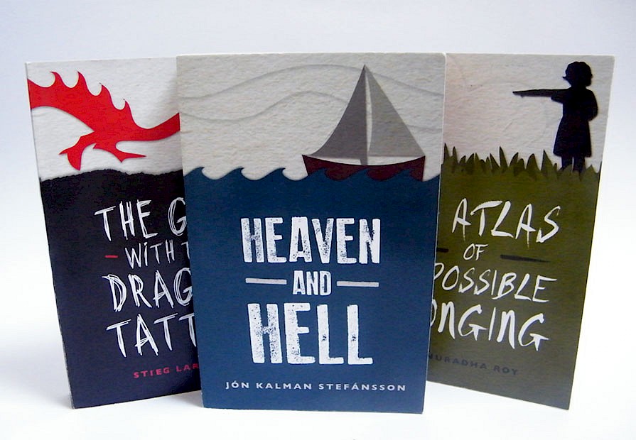 These book covers were my entry for the Maclehose Press (an impprint of Quercus) book cover competition, which were also shortlisted. The brief was to redesign the titles, giving them a strong identity throughout each title. I have used the 'horizon' line on each cover (which wraps around the book) to tie them together. I have used paper cut out style illustrations to give each cover an abstract quality, with imagery which hints at themes within the book. The typography used on the front cover is unique to each book, and also relates to themes within the novels.