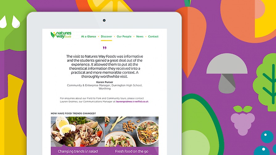 Natures Way Foods a leading manufacturer of fresh convenient food, supplying produce to the UK's largest supermarkets but not many people know who they are and what they do. We redesigned their website and brought their stories to life.