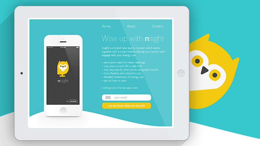 This project was my entry for the D&AD npower competition. The brief was to design an app which would help customers engage with their energy use. The nsight app I have created is designed to give customers a straight-forward, honest approach to their energy consumption and bills. The app works together with a smart meter installed in the users home, eliminating the need for meter readings as the information is sent directly to npower, and in turn the app is updated in real time, giving customers an up-to-date bill and allows them to see a more detailed breakdown of their usage.